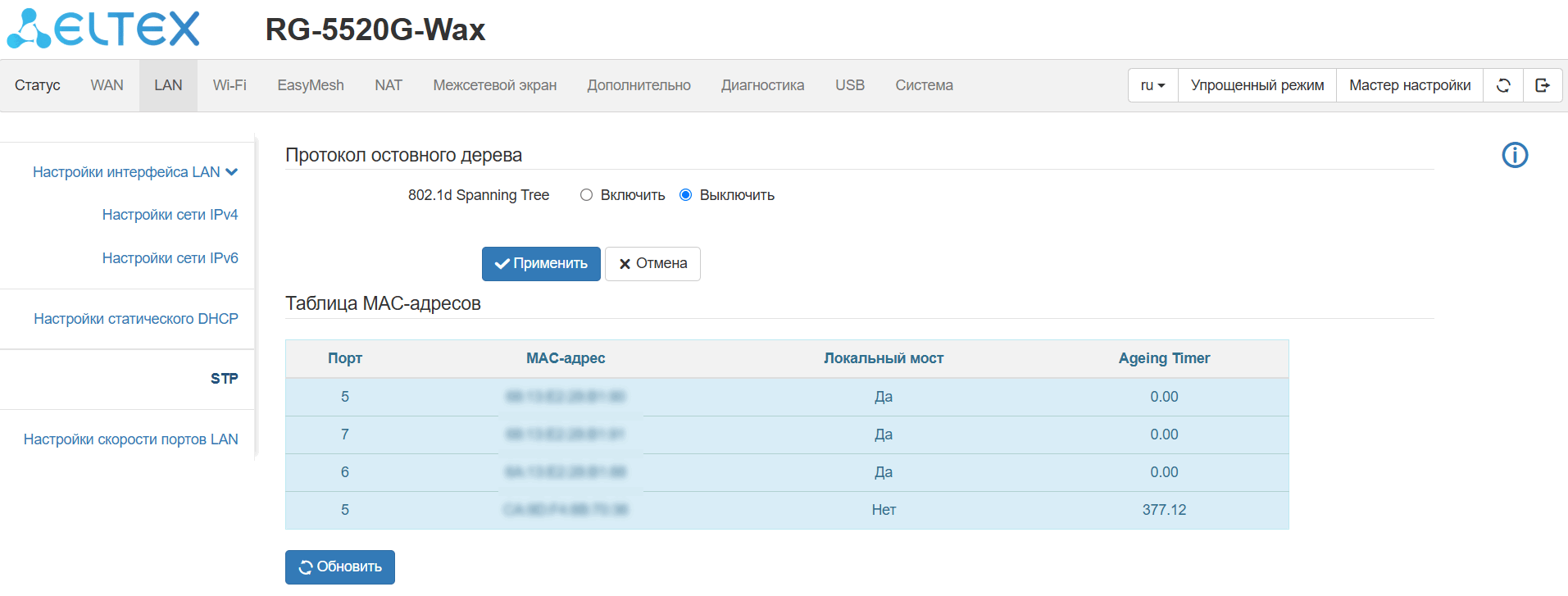 поддержка STP;