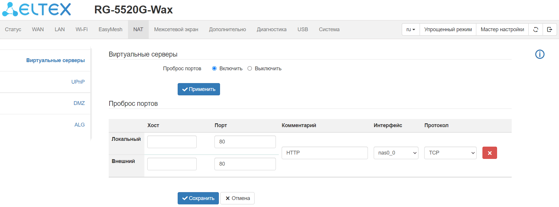 виртуальные серверы (проброс портов);