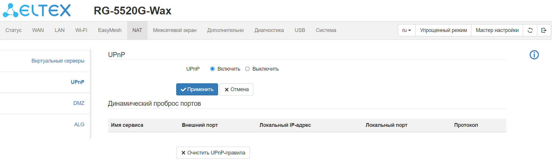 поддержка ALG (FTP, TFTP, H323, SIP, PPTP);