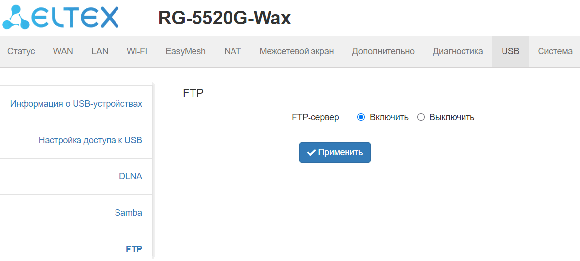 В этом подменю можно включить функционал FTP-сервера.