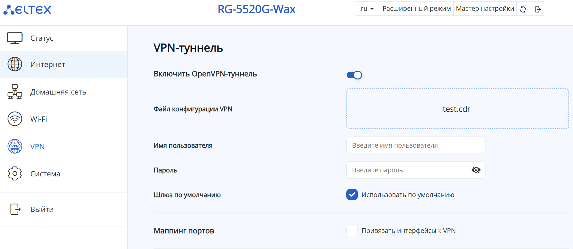 Клиент TR-069 — при установленном флаге разрешена работа встроенного клиента протокола TR-069, иначе — запрещена (по умолчанию включен).