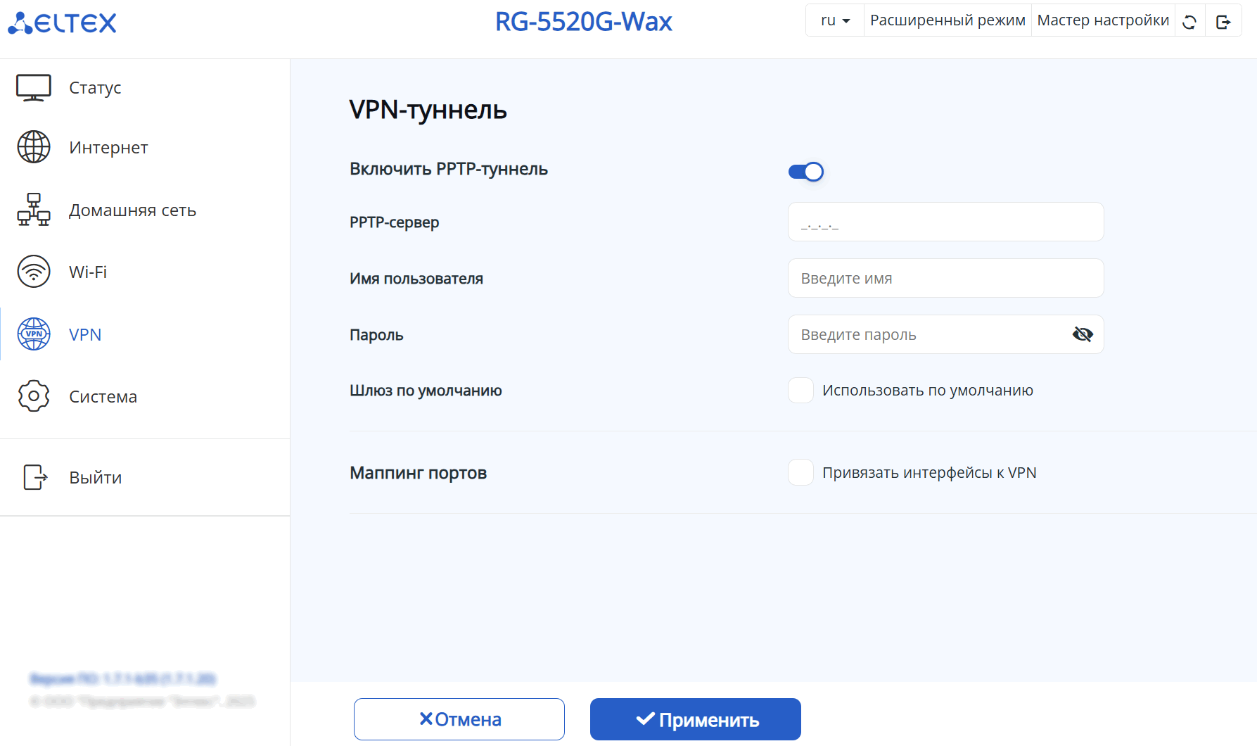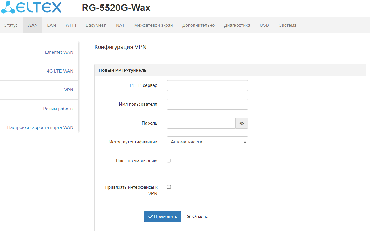поддержка PPTP;
