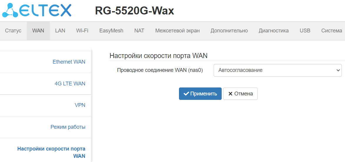 WAN: 1 порт Ethernet RJ-45 10/100/1000/2500BASE-T;