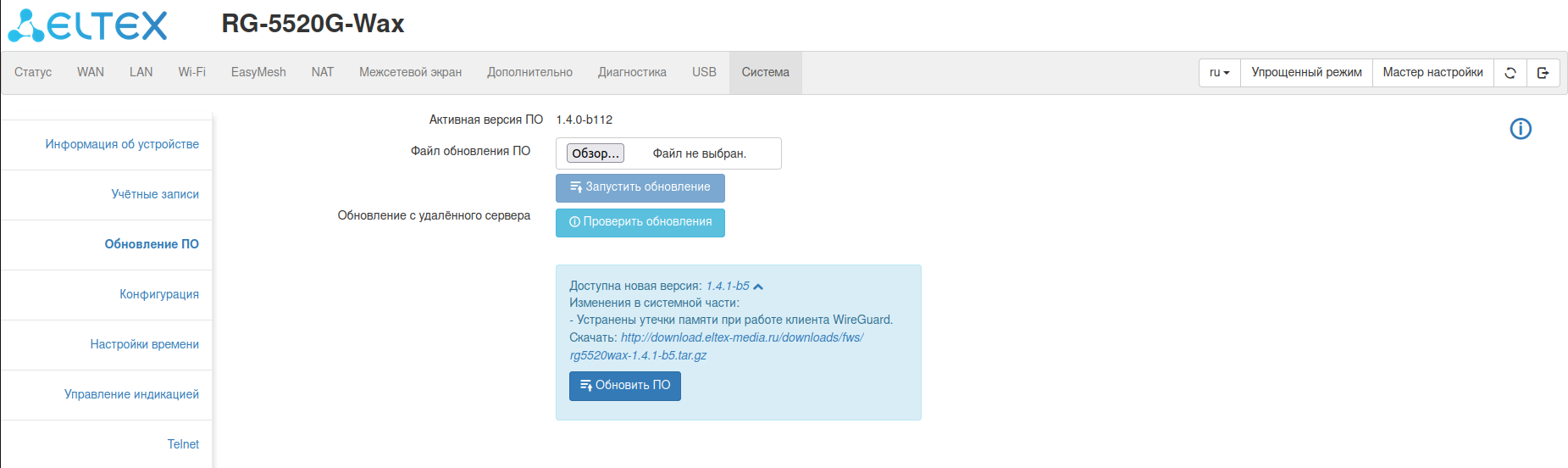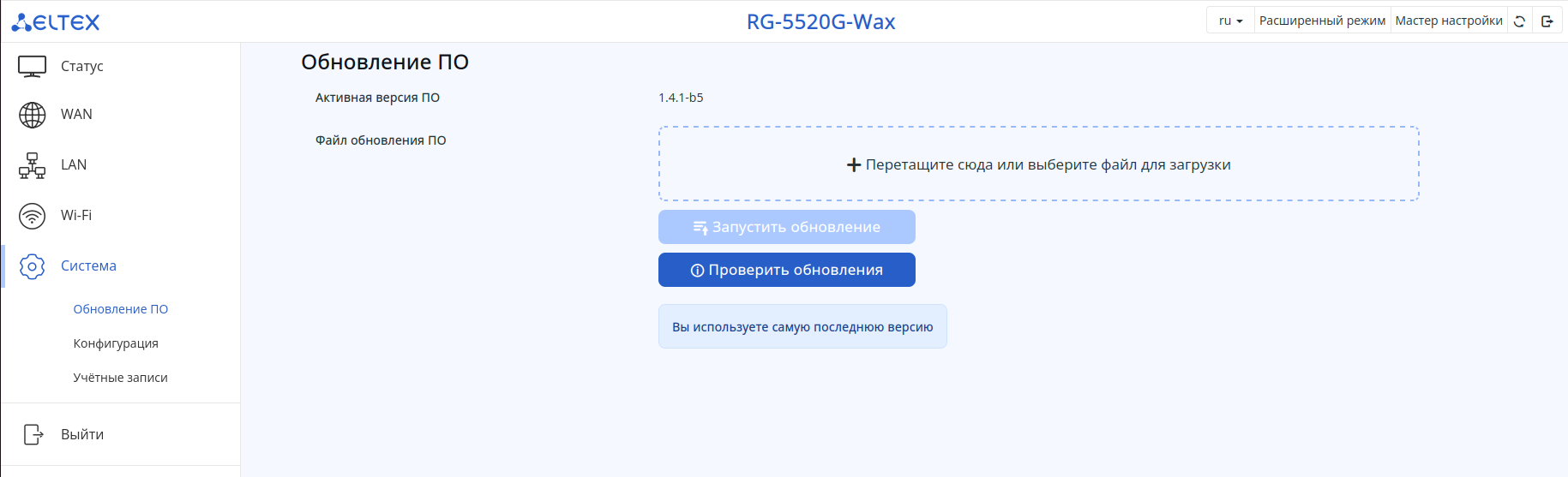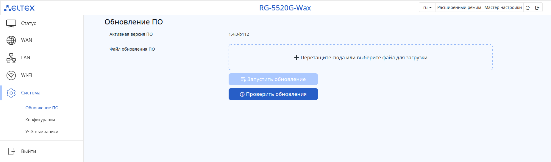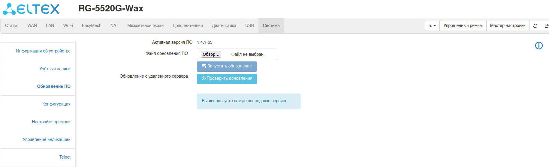 Выполнить обновление можно как в расширенном, так и в упрощенном режимах web-интерфейса.