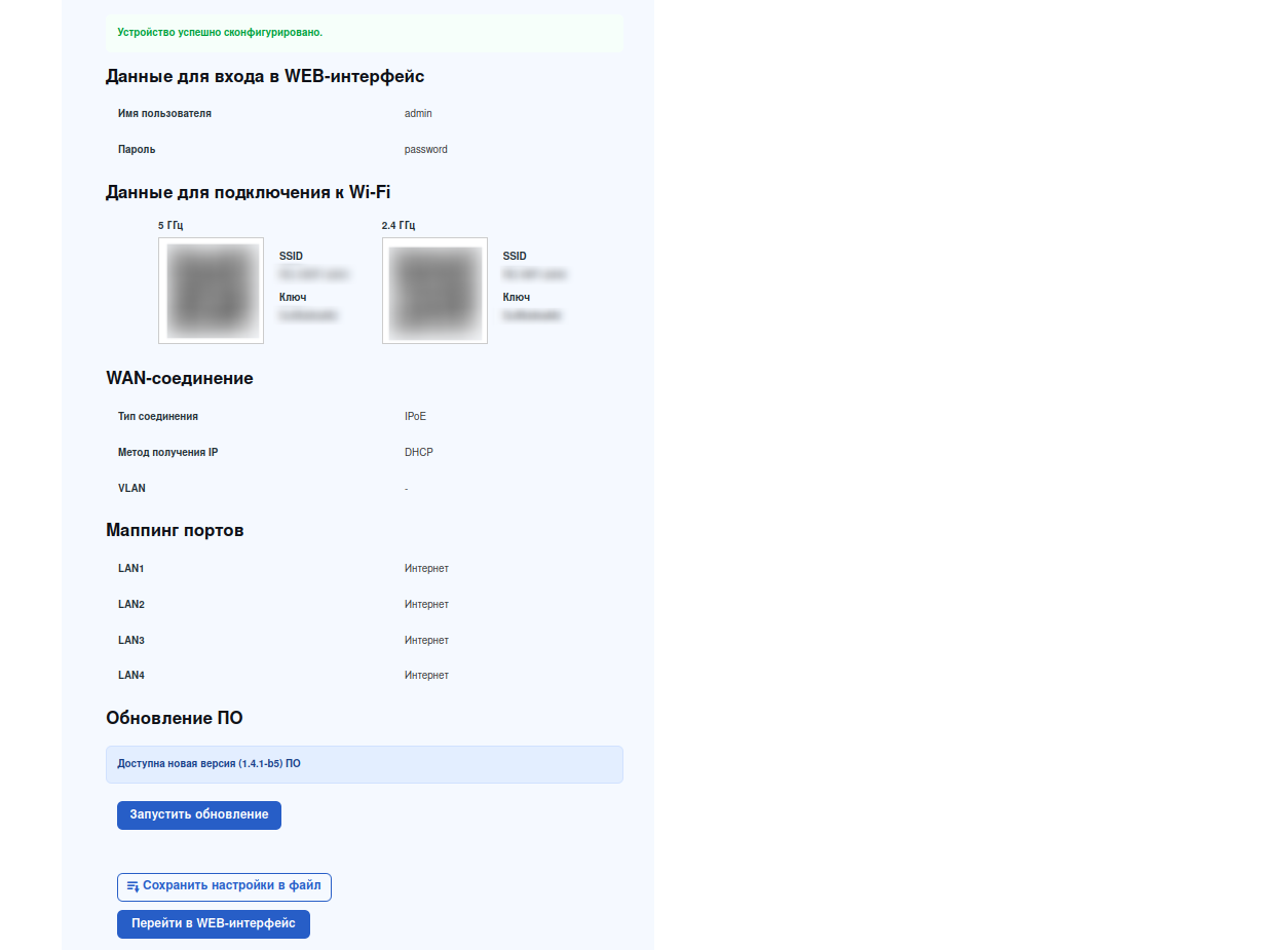 - Обновление ПО во время конфигурации устройства через Мастер настройки