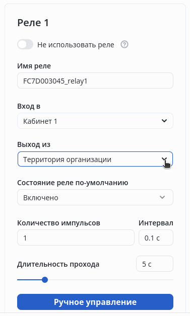 Укажите имя реле — Кабинет 1.