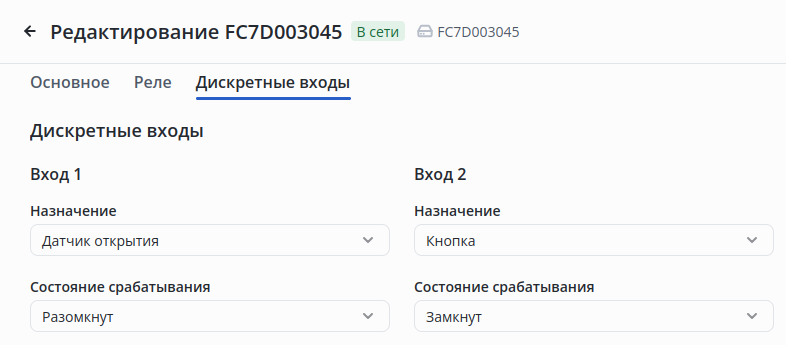 Настройка дискретных выходов