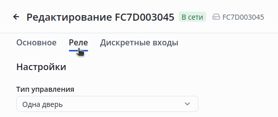 Выберите в разделе Настройки Тип управления — Одна дверь.