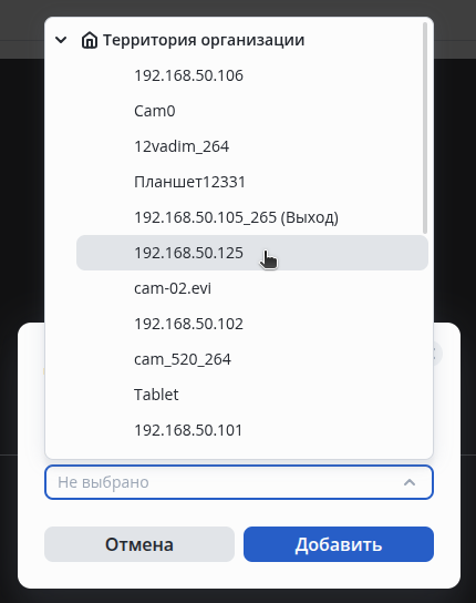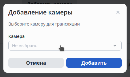 В выпадающем списке выберите камеру, которая будет добавлена на видео-вид и нажмите кнопку Добавить.