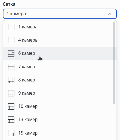 В выпадающем списке Сетка выберите количество и расположение камер, которые будут отображены в evi-video-client.