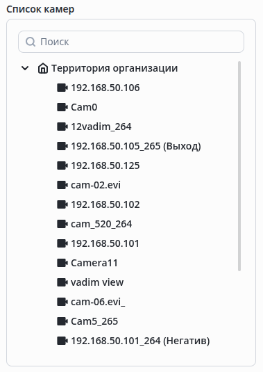 Найдите нужную камеру в списке камер.