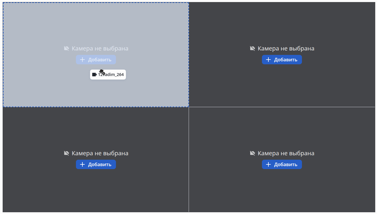 Наведите на неё курсор мыши и зажмите ЛКМ. Не отпуская ЛКМ перетащите камеру на нужную ячейку в сетке вида. Отпустите ЛКМ после выделения ячейки вида.