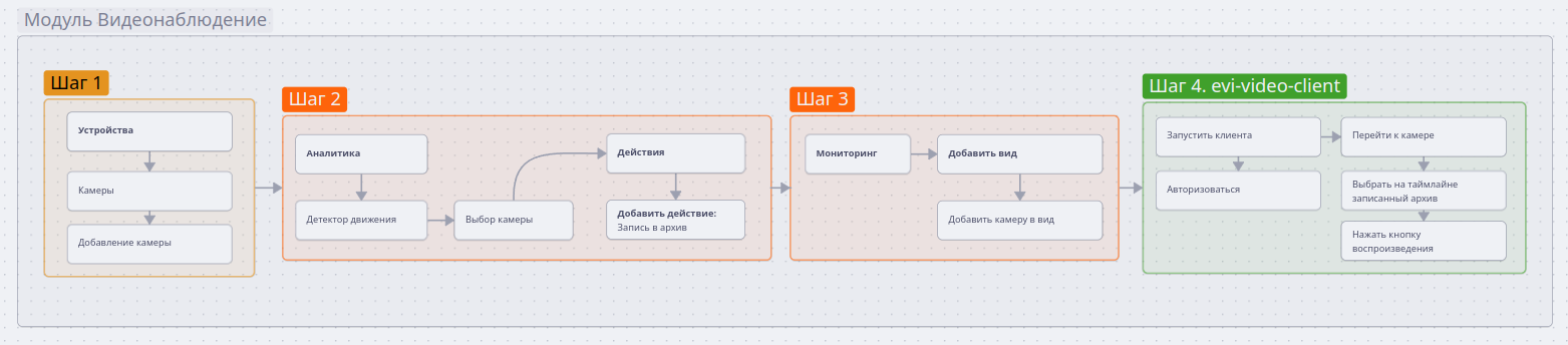 - evi-archive — модуль для формирования архива с камер видеонаблюдения;