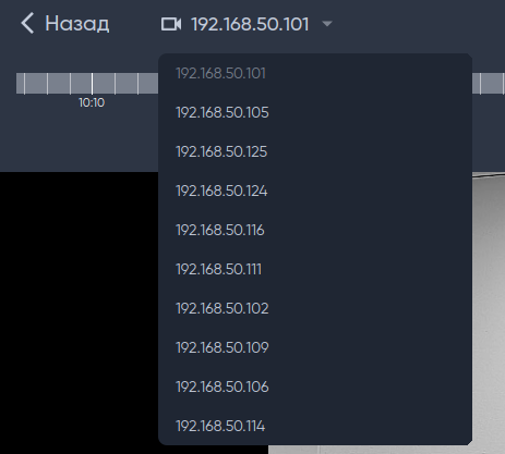 Находясь в режиме просмотра камеры, нажмите на название вашей камеры, после выберите из списка камеру, на которую хотите переключиться.