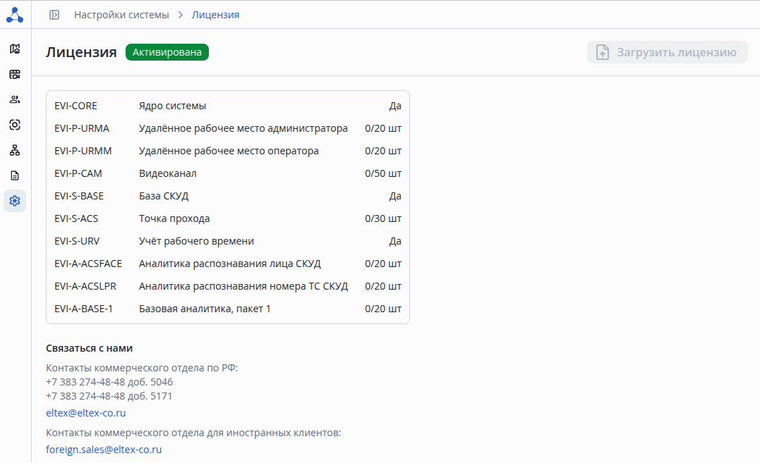 Для получения лицензии обратитесь в коммерческий отдел Eltex.