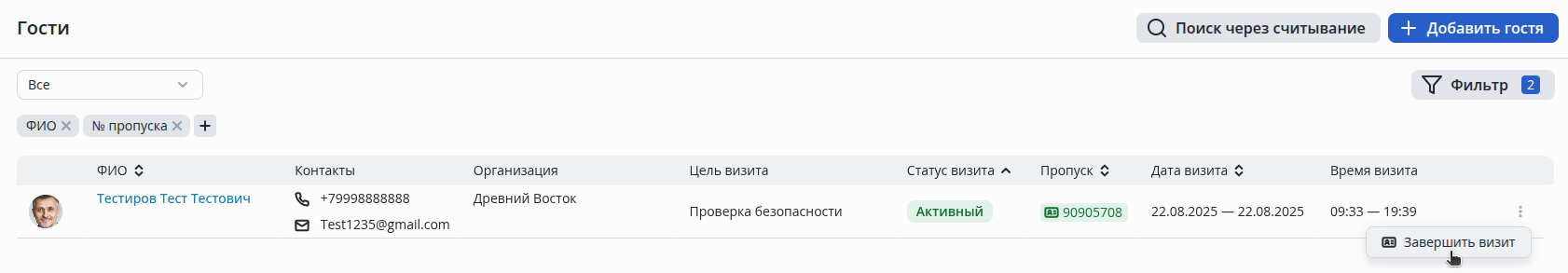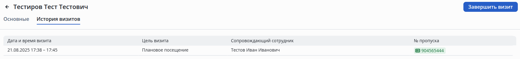 Для выдачи временного пропуска гостю нажмите кнопку +Создать визит.