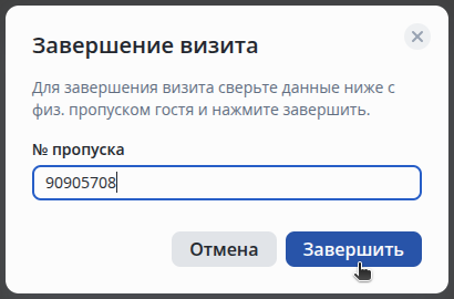 Введите номер пропуска и нажмите Завершить.
