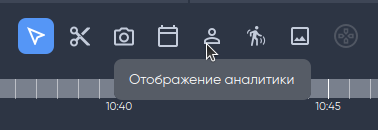 Для просмотра метаинформации по работе аналитики в архиве нажмите на кнопку отображение аналитики и выберите фрагмент архива на таймлайне.
