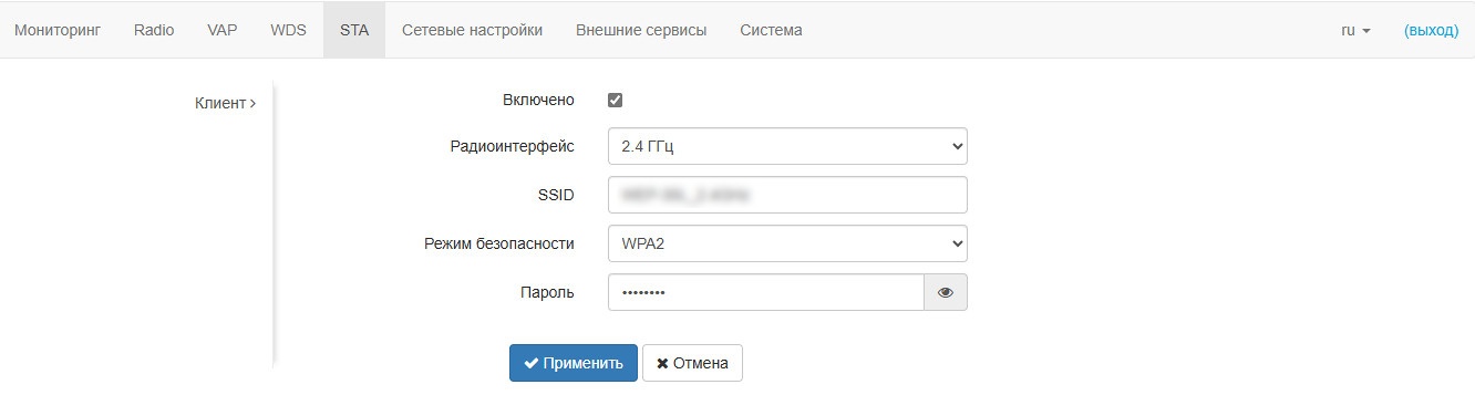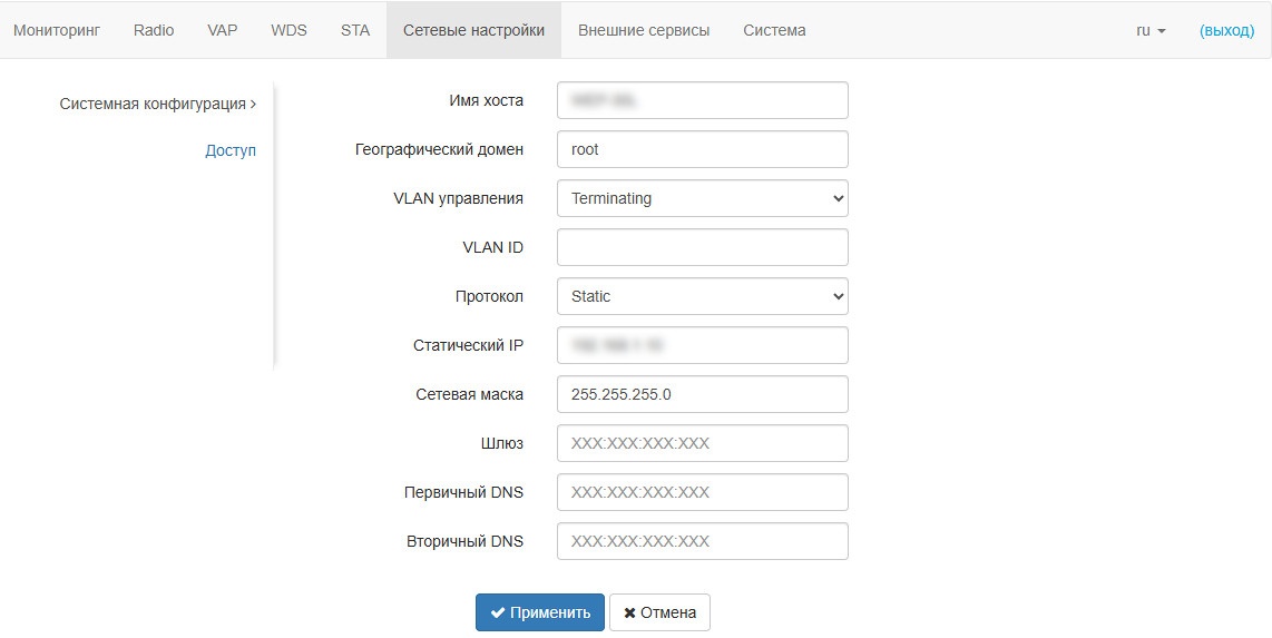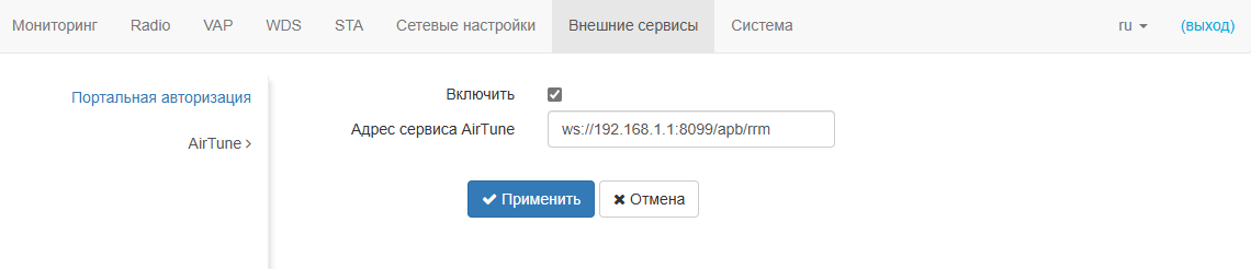 7.3.7 Настройка VAP с внешней портальной авторизацией
