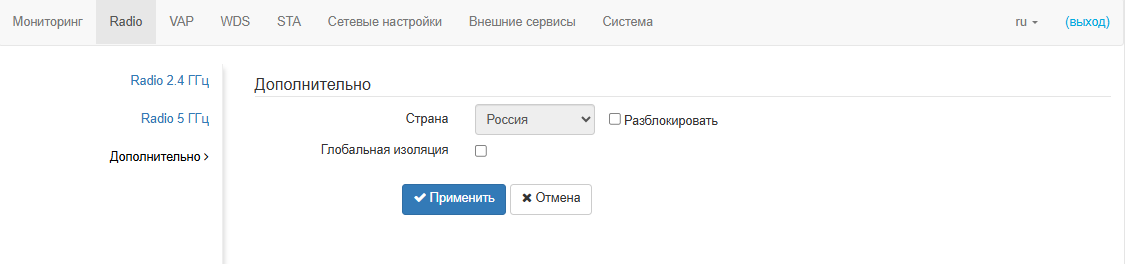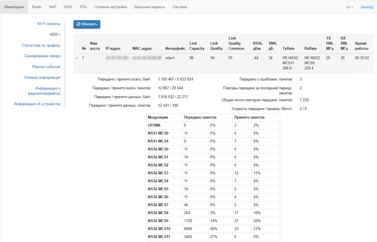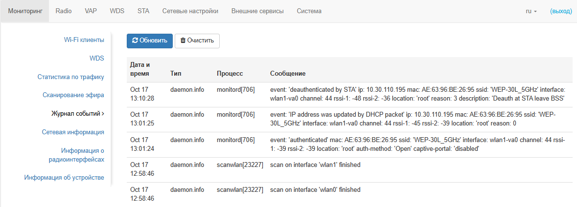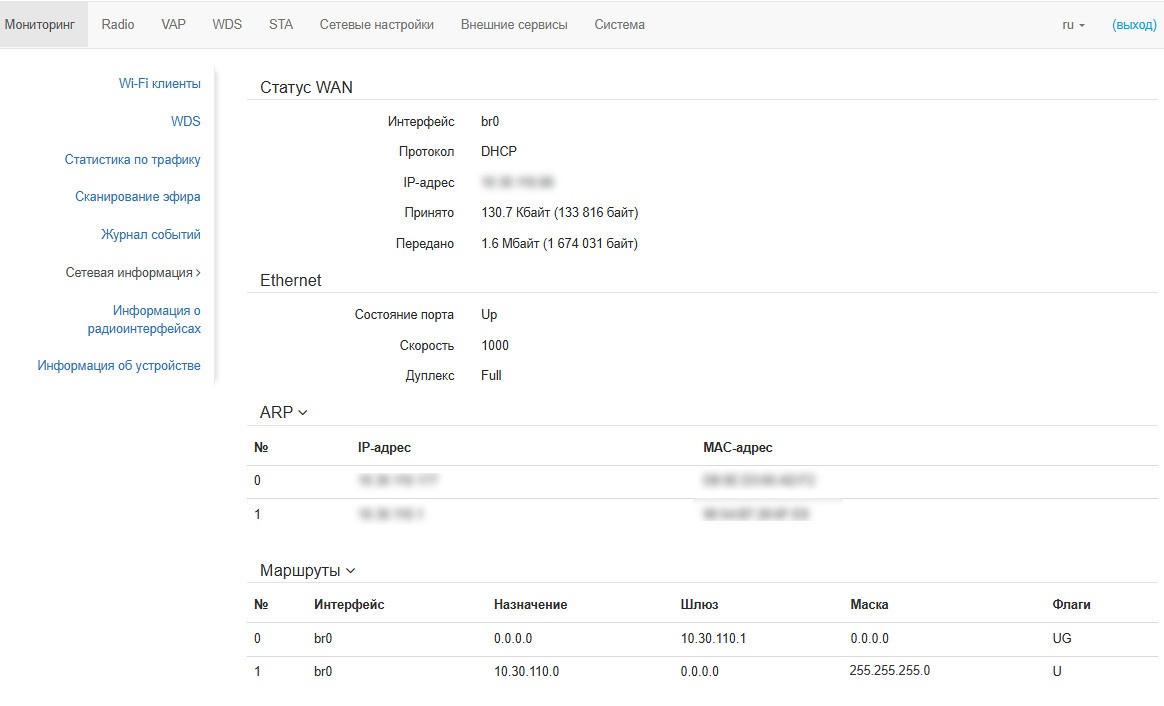 Для удалённого захвата пакетов с радиоинтерфейсов необходимо поднять интерфейсы radio0 и/или radio1 из предыдущего пункта.