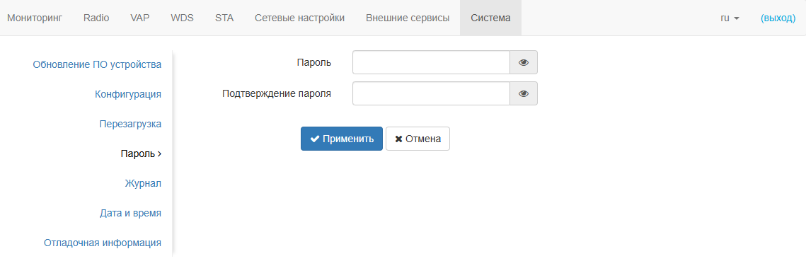 WOP-30LI(config):/radar# mqtt-password password (где password — пароль. Необходим для авторизации на сервисе-коллекторе)