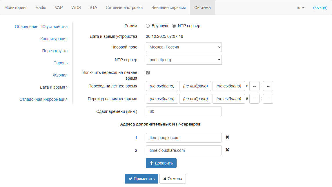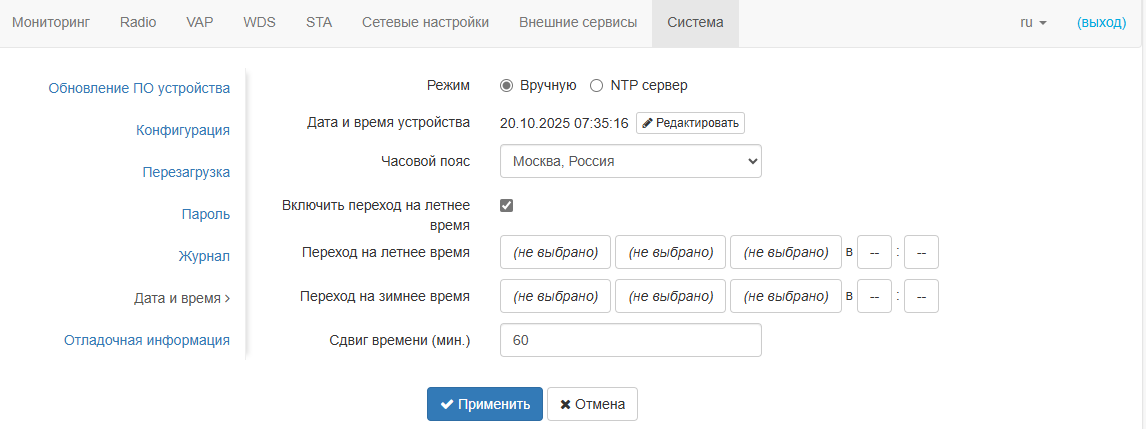 8.2.4 Выгрузка файла дампа трафика с точки доступа на сервер
