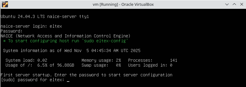 Установка NAICE в виде OVA-образа поддержана начиная с версии 1.0.