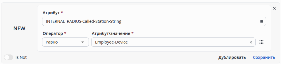 | Текст/спецформат | Employee-Device | INTERNAL_RADIUS·Called-Station-String = Employee-Device |