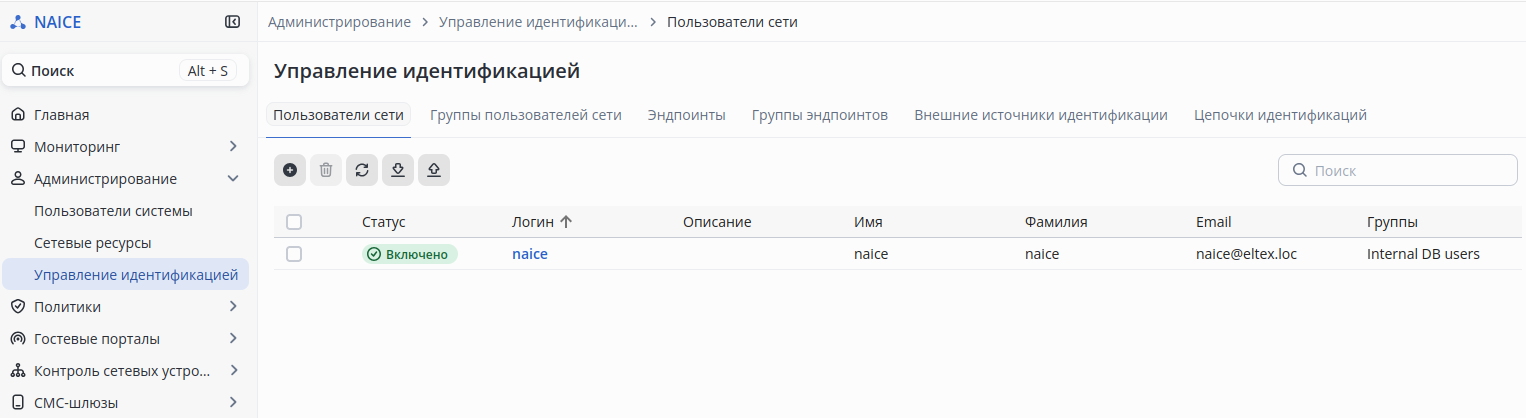 Перейти в раздел Администрирование → Управление идентификацией → Пользователи сети, нажать на кнопку .