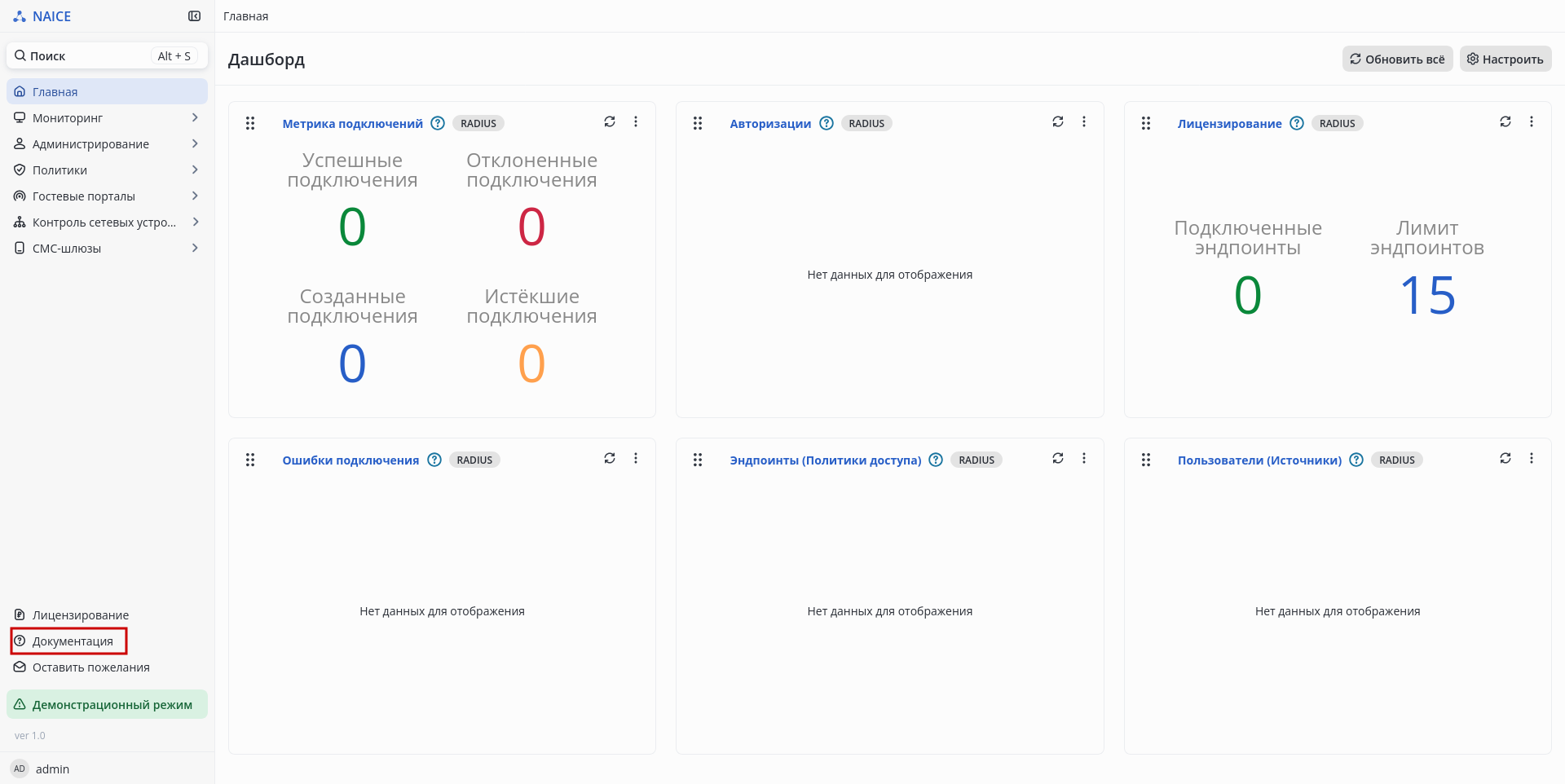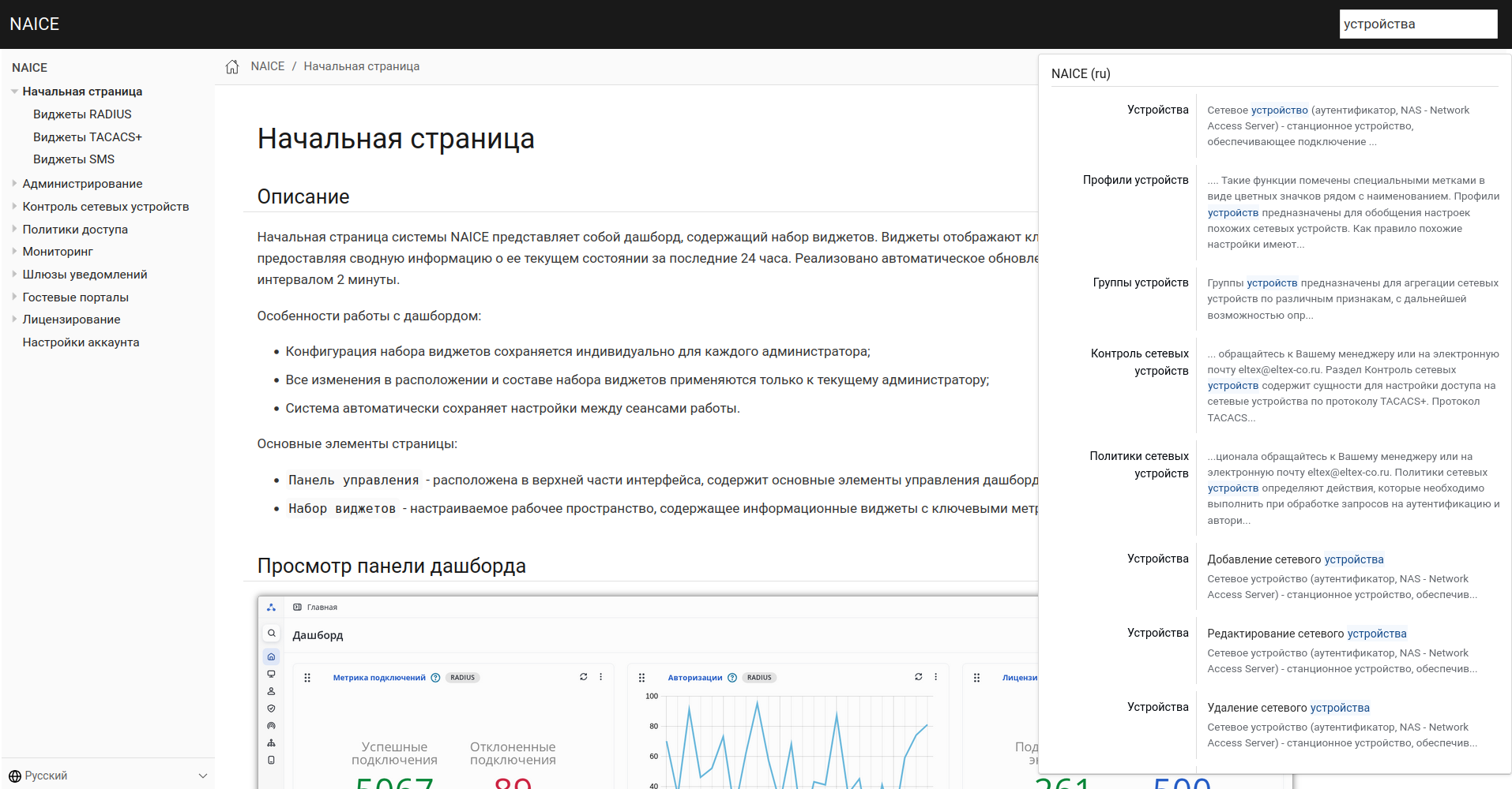 Для каждого раздела реализована встроенная документация, подробно описывающая назначения, возможные действия и настройки, которые можно выполнить. Документация есть на русском и английском языках.