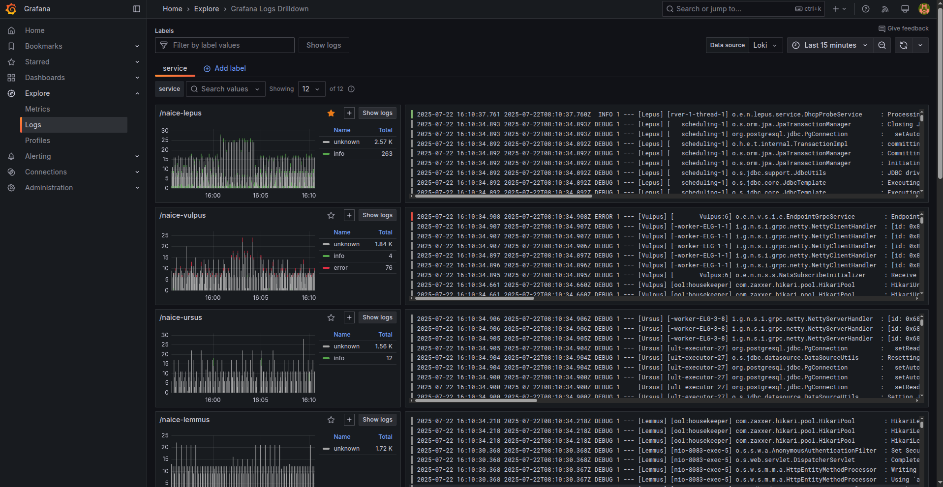 В состав мониторинга включена система сбора и анализа логов Loki. Данная система предназначена для сбора и анализа логов в распределенных и контейнерных средах. Официальная документация. Loki устанавливается вместе с системой мониторинга. По умолчанию срок хранения логов в системе 7 дней.