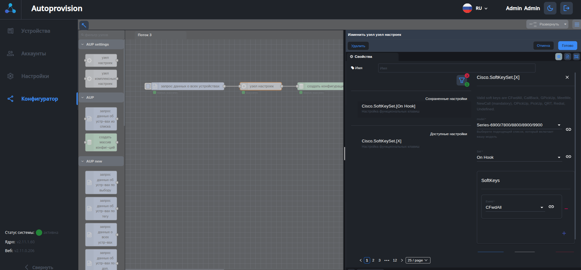 Настройка задается через Cisco.SoftKeySet.[X] в графе конфигуратора:
