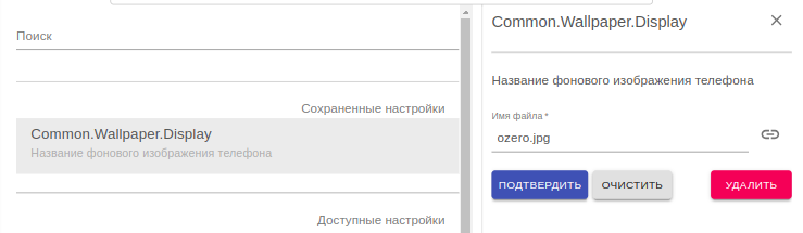 • Настройте конфигурацию Common.Wallpaper.Display, укажите имя необходимого шаблона.