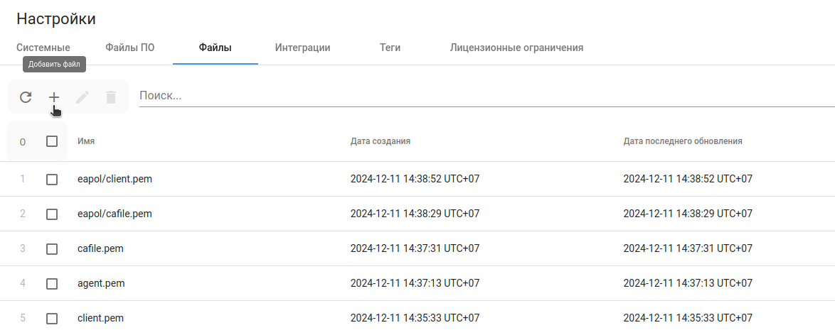 3. Здесь можно загрузить файлы сертификатов с помощью кнопки «Добавить файл»: