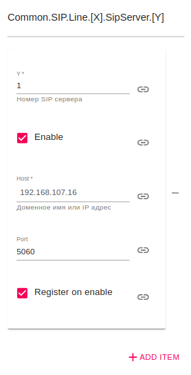 - Y* (номер SIP-сервера): 1;