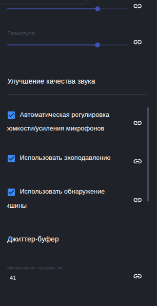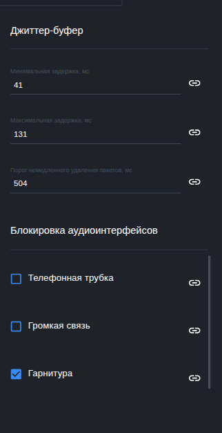 В параметре можно задать: усиление звука, регулировка громкости, улучшение качества звука, джиттер-буфер, блокировка аудиоинтерфейсов.