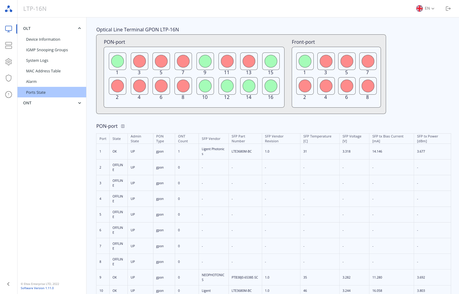 LTP-16N# configure terminal #switching to OLT configuration mode