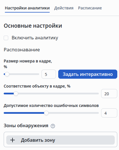 Зоны обнаружения область, в которой будет происходить распознавание.