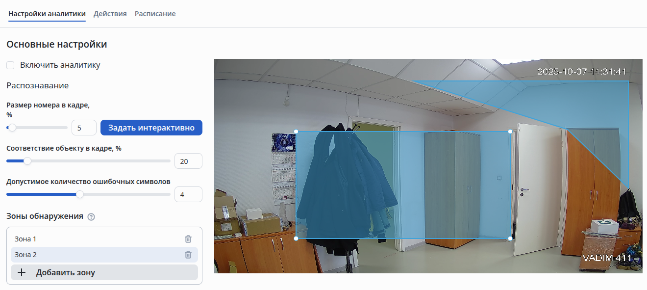 Нажмите кнопку Добавить зону, разместите на изображении зону через взаимодействия с белыми точками.