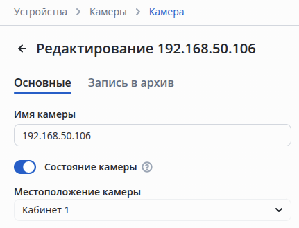 Местоположение камеры должно соответствовать параметру Вход в у реле, которым планируется управлять.