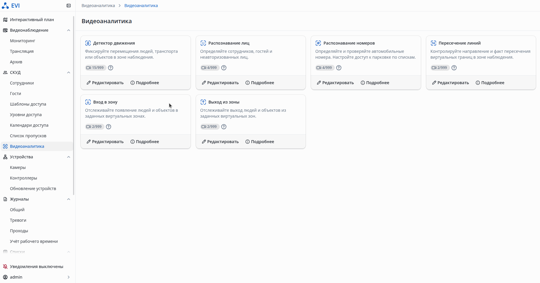 EVI Analytics — модуль видеоаналитики, предназначен для обнаружения, распознавания, подсчета, трекинга объектов в соответствии с моделями.