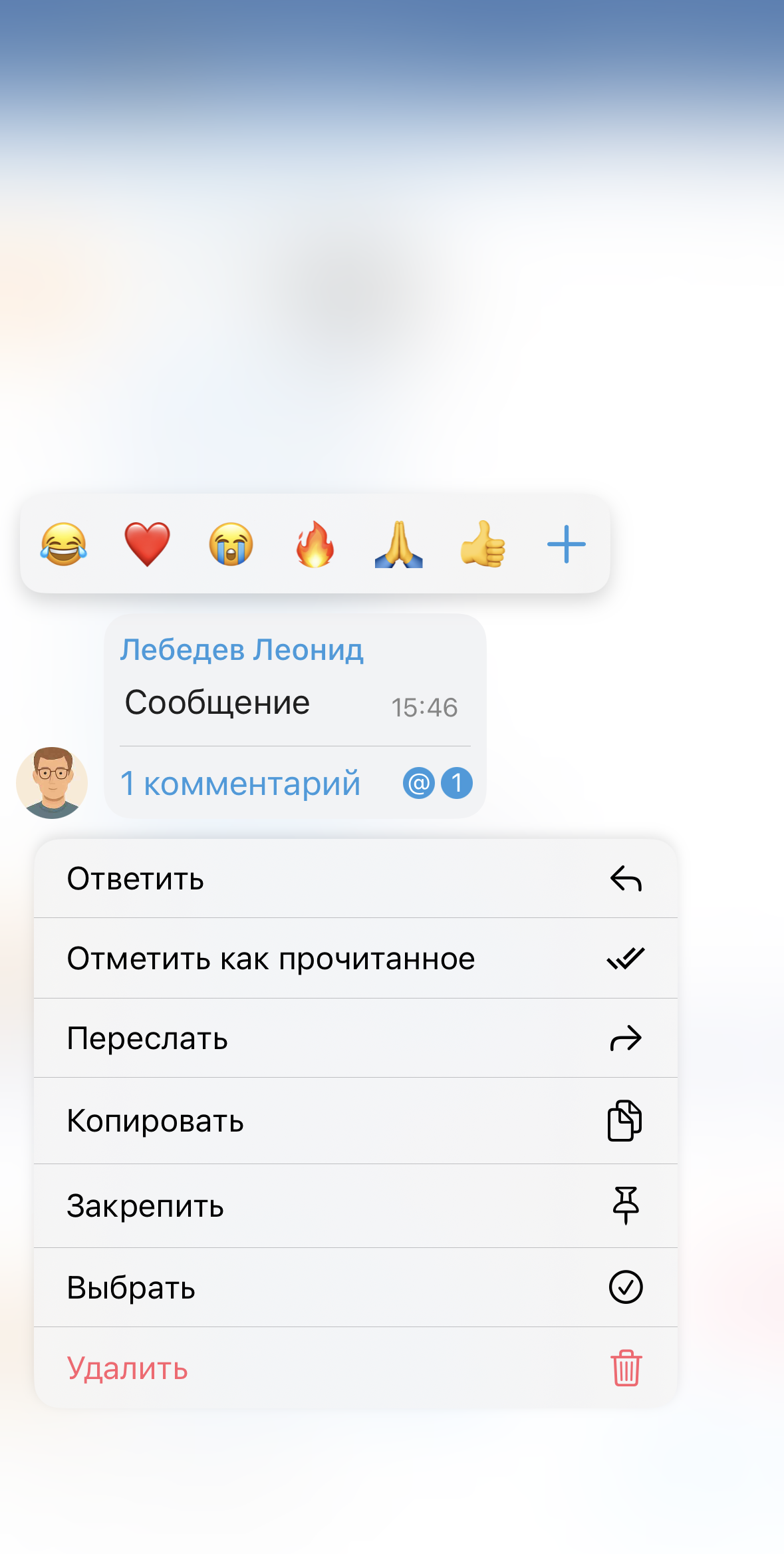 - кнопка вызова меню напротив каждой теме в списке тем (только для суперчата, см. раздел «Суперчаты»).
