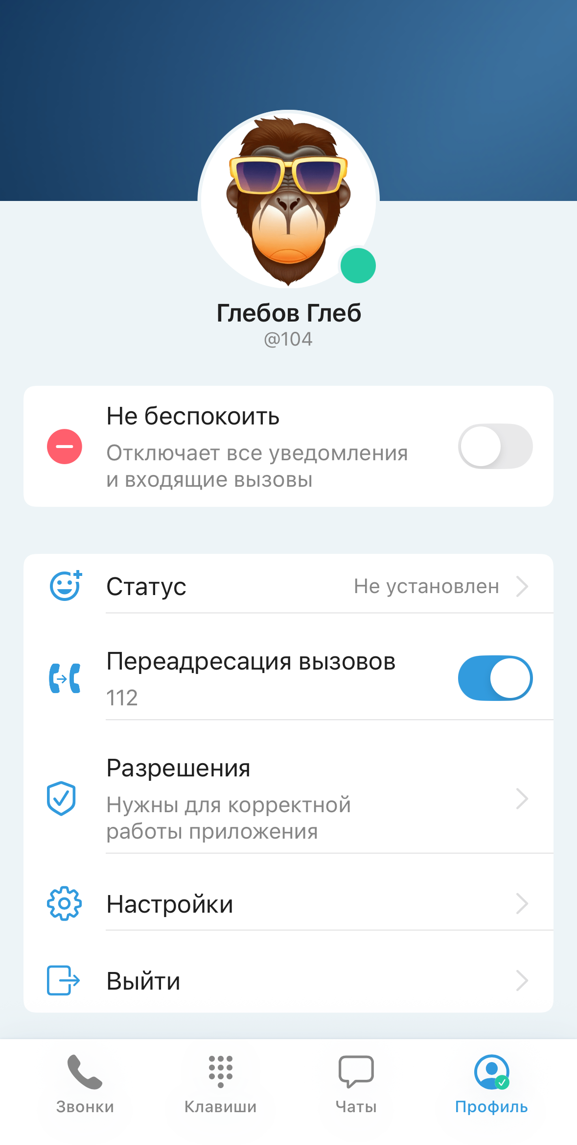 В приложении предусмотрена активация и деактивация услуги «Безусловная переадресация вызовов».