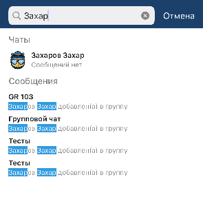 При нажатии на пользователя в списке он будет отмечен для добавления в групповой чат, а в верхней части интерфейса отобразится список всех отмеченных пользователей. Для удаления отметки с пользователя можно повторно нажать на него в списке всех пользователей либо нажать на него в списке отмеченных пользователей.