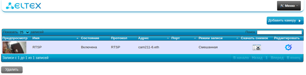 Также можно удалить камеру на данной странице, нажав кнопку Удалить и подтвердив данное действие.