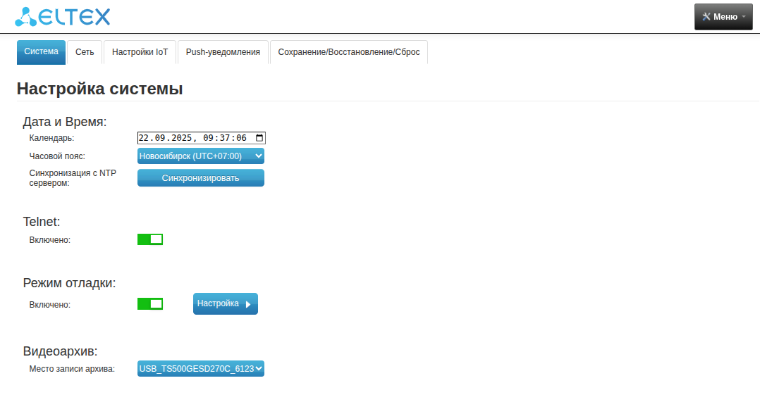 • Включить/отключить Telnet-сервер.