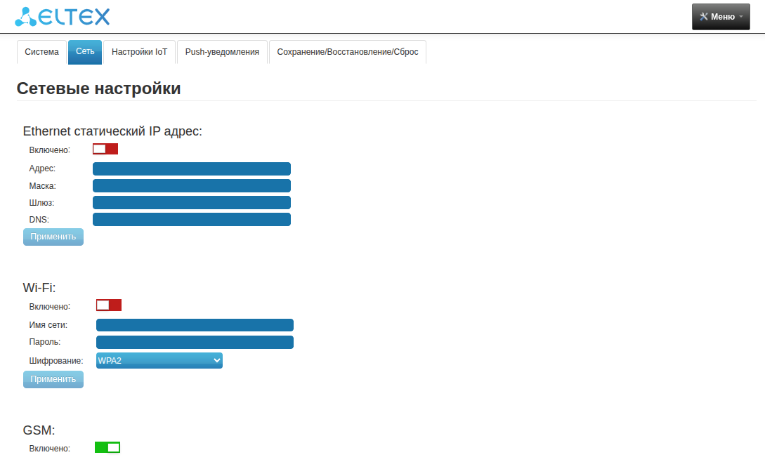 Откройте браузер и введите в адресную строку IP-адрес вашей локальной платформы (см. в разделе «О платформе» руководства «Мобильное приложение Eltex Home»).
