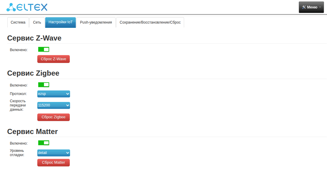• Включить/отключить сервис Z-Wave. После отключения сервиса добавление Z-Wave устройств и текущие Z-Wave устройства не будут доступны.