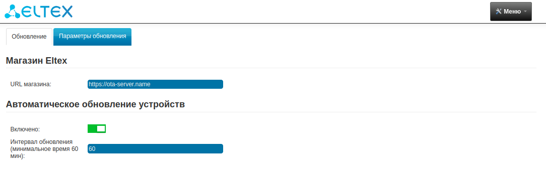 Во вкладке Параметры обновления можно включить/отключить автоматическое обновление устройств и изменить интервал автообновления.