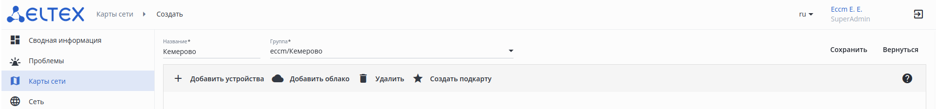 • Вернуться — кнопка для возврата к списку карт сети (без сохранения изменений/создания новой карты).